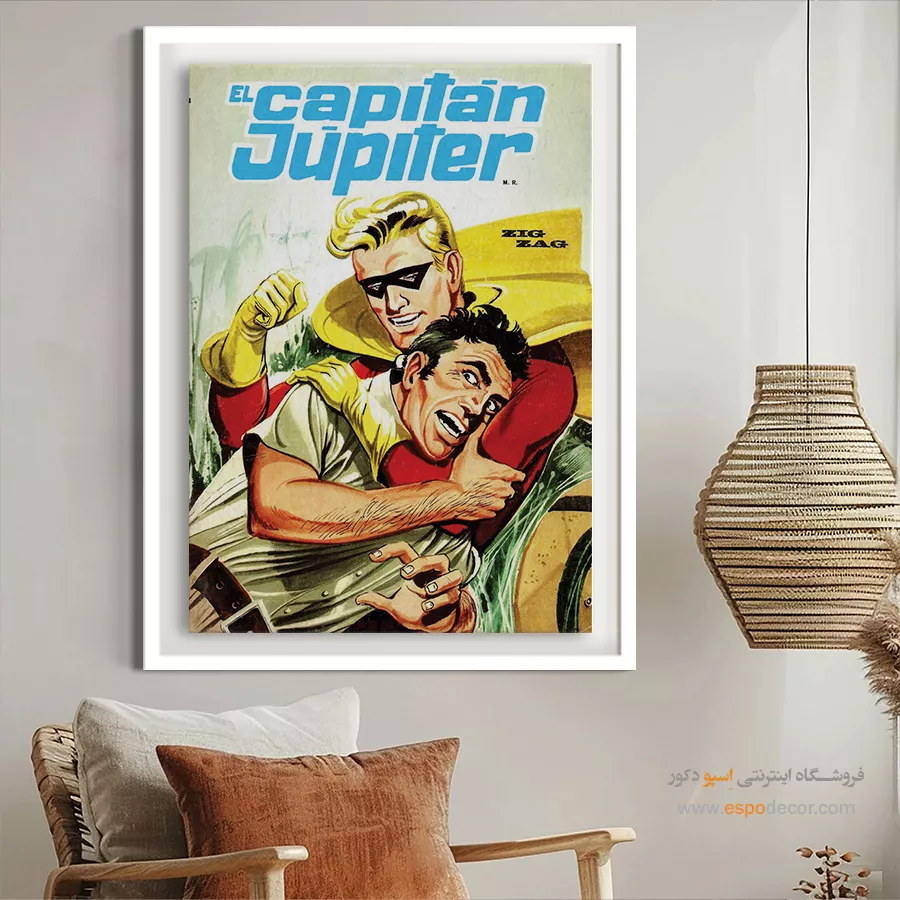 یک قاب از دنیای خیال؛ تابلو بوم مجله کمیک، تلفیقی از رنگ، روایت و شخصیت. جلد مجله هایی که بر دیوار جان میگیرند؛ مناسب برای آنان که با قهرمانان، بزرگ شدهاند.