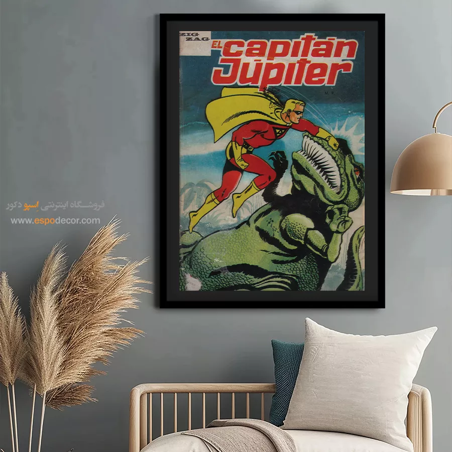 یک قاب از دنیای خیال؛ تابلو بوم مجله کمیک، تلفیقی از رنگ، روایت و شخصیت. جلد مجله هایی که بر دیوار جان میگیرند؛ مناسب برای آنان که با قهرمانان، بزرگ شدهاند.