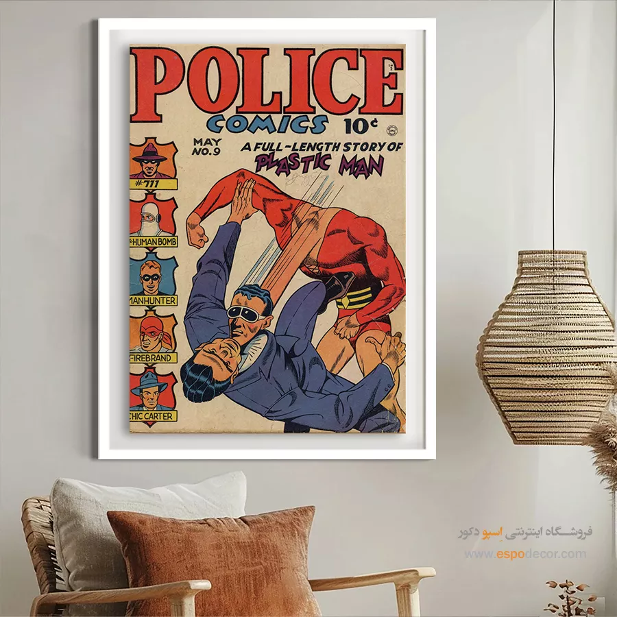 تابلو بوم مجله کمیک – روایتی تصویری از دنیای قهرمانانبر دیوار خانه‌ات، قاب کوچکی بزن از جهان بزرگی که در کودکی‌ات نفس می‌کشید. تابلو بوم مجله کمیک فقط یک تصویر نیست؛ گویی پاره‌ای از خاطرات، رنگ‌ها و افسانه‌ها را قاب گرفته‌ای و به دیوار سپرده‌ای تا هر روز نگاهت را از زندگی روزمره جدا کند.اینجا، بتمن در دل تاریکی قدم می‌زند، اسپایدرمن از آسمان می‌گذرد و سوپرمن، همچنان نجات‌دهنده‌ای خستگی‌ناپذیر است. جلدهای نمادین مجلات کمیک، حالا با چاپی بی‌نقص روی بوم‌هایی با بافت لطیف و هنری، در نقش یک تابلوی دکوراتیو ظاهر شده‌اند؛ نه صرفاً برای زیبایی، که برای حس‌برانگیزی.برای که و کجا؟برای نوجوانی که قهرمان‌ها را از صمیم قلب می‌شناسدبرای هنرمندی که میان نقاشی و داستان، مرزی نمی‌بیندبرای دکوراسیونی که جسارت و خلاقیت می‌طلبدیا حتی برای عاشق دنیای کمیک‌ها که به دیوار خانه‌اش هم باید معنا بدهداین تابلوها… نه صرفاً یک شیء، که یک زبان بصری‌اند. هر تابلو بوم، دعوتی‌ست به دنیای رنگارنگِ هیجان، مبارزه، پیروزی و خیال. از جلدهای کلاسیک گرفته تا نسخه‌های مدرن، هر طرح، داستانی‌ست به‌تنهایی.ویژگی‌ها:چاپ دیجیتال با جزییات بالا روی بوم هنریرنگ‌های زنده و مقاوم در برابر نورفریم چوبی سبک، آماده نصب در هر فضاامکان سفارش با قاب جزیره سفید یا مشکیدر دنیای کمیک‌ها، مرز میان واقعیت و رویا باریک است. با این تابلو، همان باریکه را روی دیوار بکش — تا رویاهایت هر روز از آن عبور کنند.