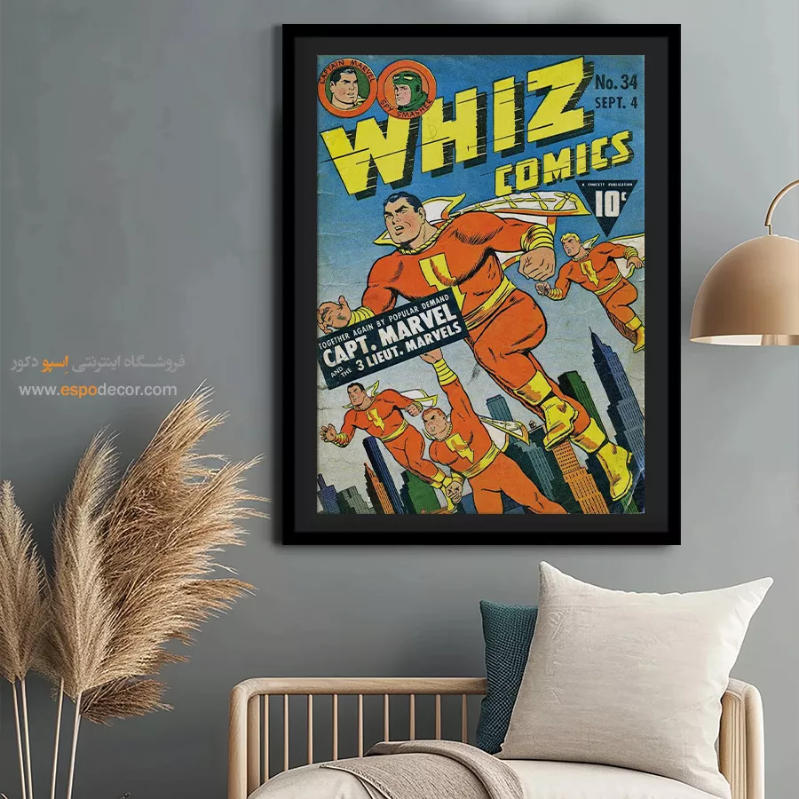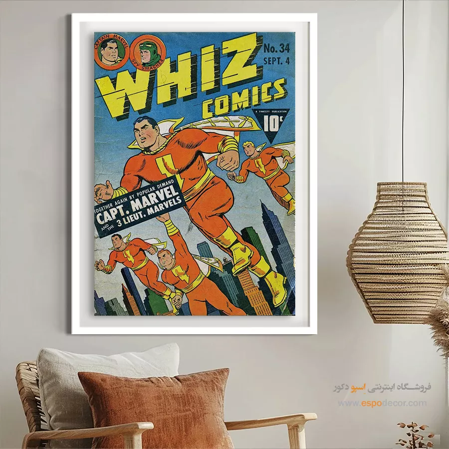 یک قاب از دنیای خیال؛ تابلو بوم مجله کمیک، تلفیقی از رنگ، روایت و شخصیت. جلد مجله هایی که بر دیوار جان میگیرند؛ مناسب برای آنان که با قهرمانان، بزرگ شدهاند.