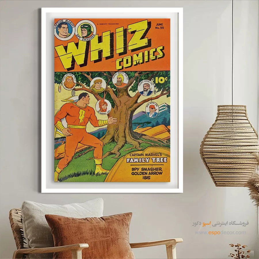 یک قاب از دنیای خیال؛ تابلو بوم مجله کمیک، تلفیقی از رنگ، روایت و شخصیت. جلد مجله هایی که بر دیوار جان میگیرند؛ مناسب برای آنان که با قهرمانان، بزرگ شدهاند.