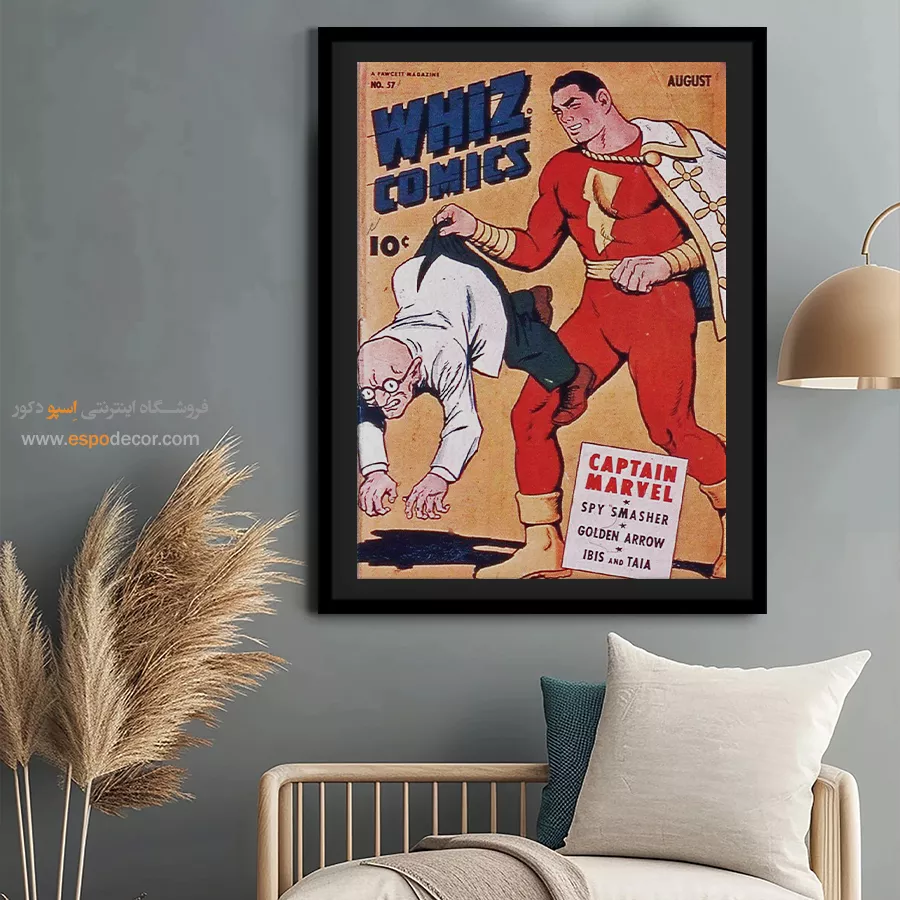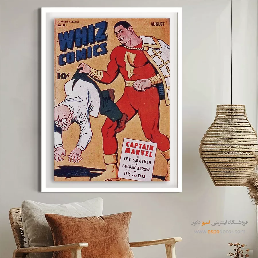 یک قاب از دنیای خیال؛ تابلو بوم مجله کمیک، تلفیقی از رنگ، روایت و شخصیت. جلد مجله هایی که بر دیوار جان می‌گیرند؛ مناسب برای آنان که با قهرمانان، بزرگ شده‌اند.