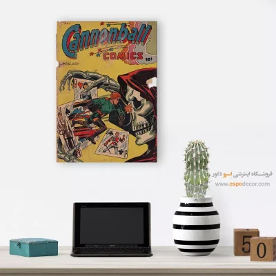 یک قاب از دنیای خیال؛ تابلو بوم مجله کمیک، تلفیقی از رنگ، روایت و شخصیت. جلد مجله هایی که بر دیوار جان میگیرند؛ مناسب برای آنان که با قهرمانان، بزرگ شدهاند.