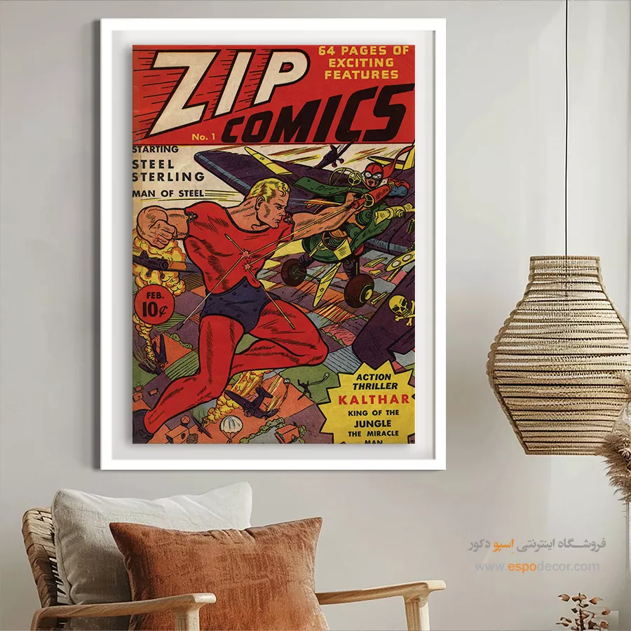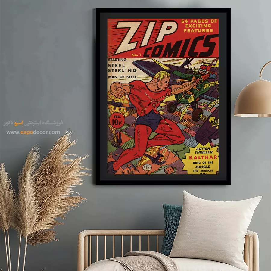 یک قاب از دنیای خیال؛ تابلو بوم مجله کمیک، تلفیقی از رنگ، روایت و شخصیت. جلد مجله هایی که بر دیوار جان میگیرند؛ مناسب برای آنان که با قهرمانان، بزرگ شدهاند.