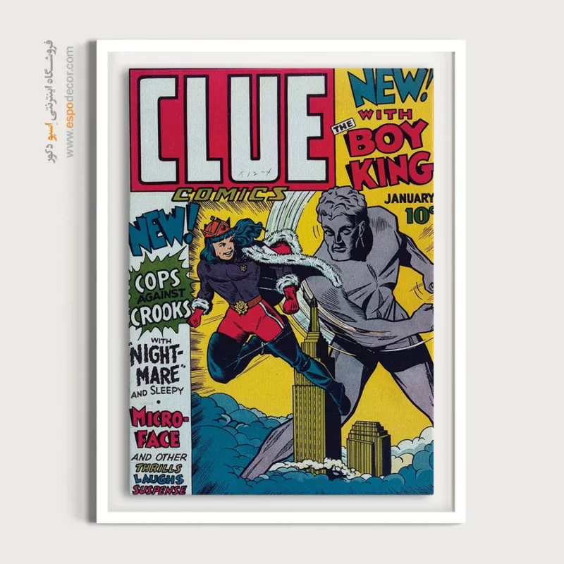 یک قاب از دنیای خیال؛ تابلو بوم مجله کمیک، تلفیقی از رنگ، روایت و شخصیت. جلد مجله هایی که بر دیوار جان میگیرند؛ مناسب برای آنان که با قهرمانان، بزرگ شدهاند.