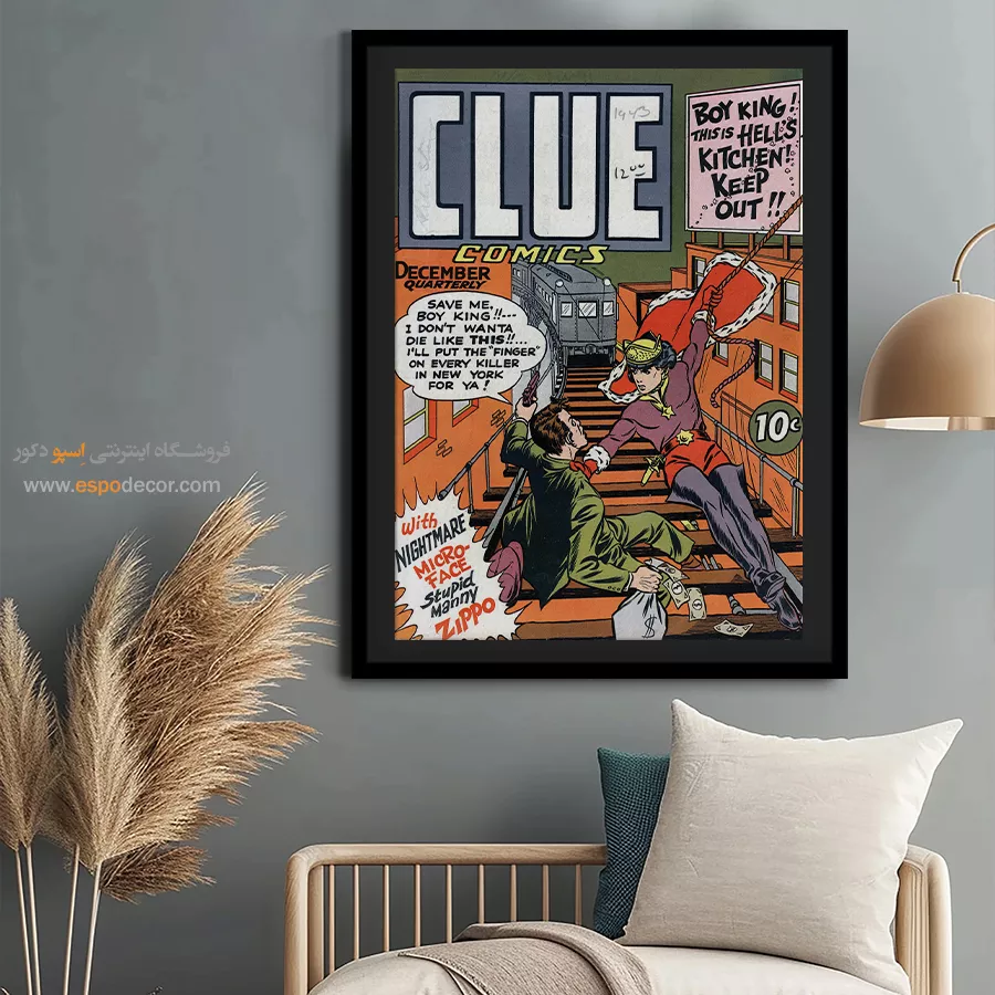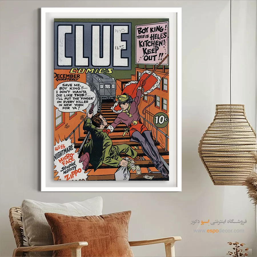 یک قاب از دنیای خیال؛ تابلو بوم مجله کمیک، تلفیقی از رنگ، روایت و شخصیت. جلد مجله هایی که بر دیوار جان میگیرند؛ مناسب برای آنان که با قهرمانان، بزرگ شدهاند.