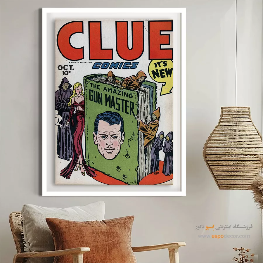 یک قاب از دنیای خیال؛ تابلو بوم مجله کمیک، تلفیقی از رنگ، روایت و شخصیت. جلد مجله هایی که بر دیوار جان میگیرند؛ مناسب برای آنان که با قهرمانان، بزرگ شدهاند.