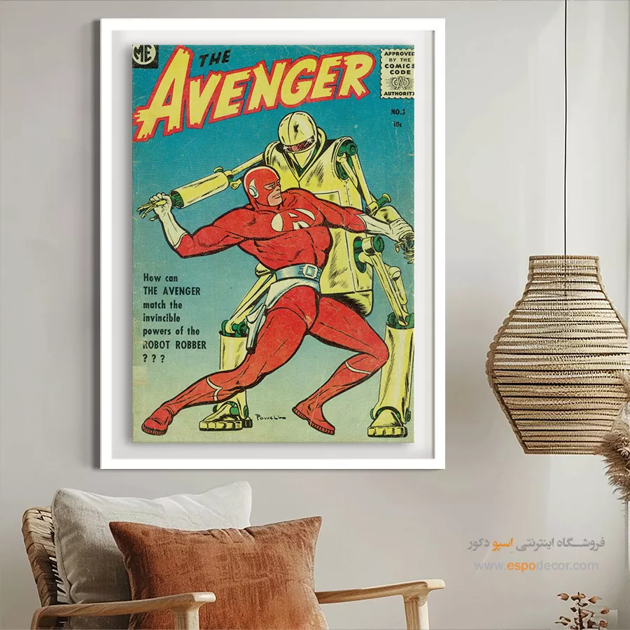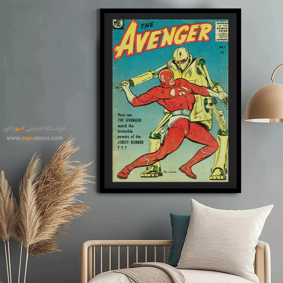 یک قاب از دنیای خیال؛ تابلو بوم مجله کمیک، تلفیقی از رنگ، روایت و شخصیت. جلد مجله هایی که بر دیوار جان می‌گیرند؛ مناسب برای آنان که با قهرمانان، بزرگ شده‌اند.