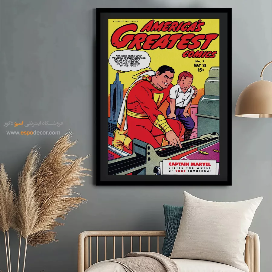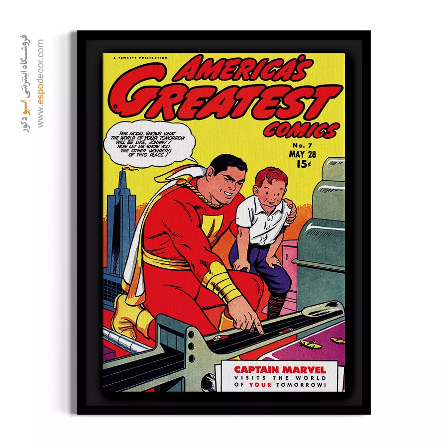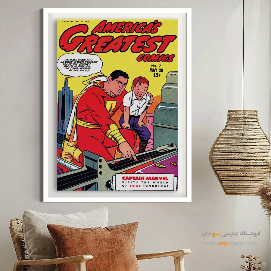 یک قاب از دنیای خیال؛ تابلو بوم مجله کمیک، تلفیقی از رنگ، روایت و شخصیت. جلد مجله هایی که بر دیوار جان میگیرند؛ مناسب برای آنان که با قهرمانان، بزرگ شدهاند.