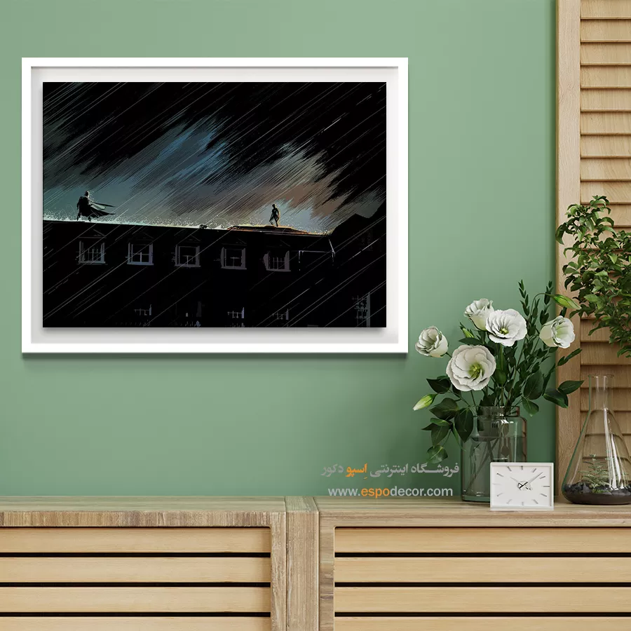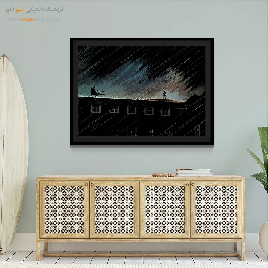- ادامه طرح اصلی تا کنارههای بوم: ما در اسپو دکور از این روش استفاده میکنیم تا تابلو حالت منسجم و یکپارچه داشته باشد و از نمای کناری نیز جذاب دیده شود.