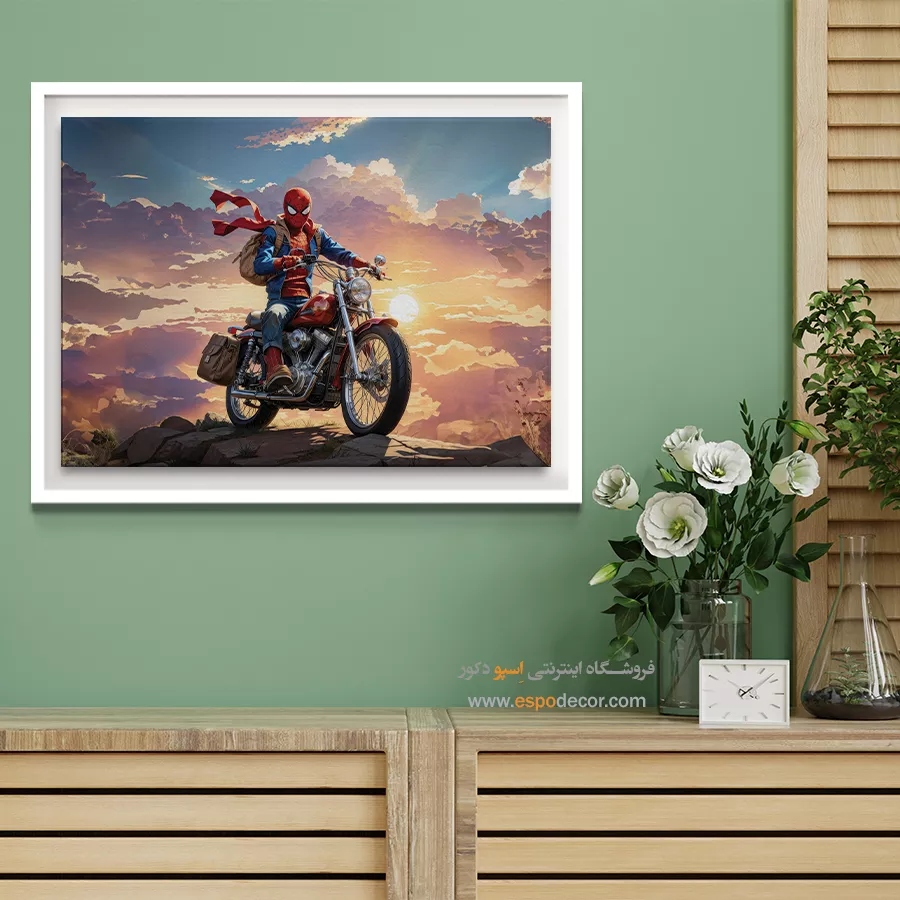 - ادامه طرح اصلی تا کنارههای بوم: ما در اسپو دکور از این روش استفاده میکنیم تا تابلو حالت منسجم و یکپارچه داشته باشد و از نمای کناری نیز جذاب دیده شود.