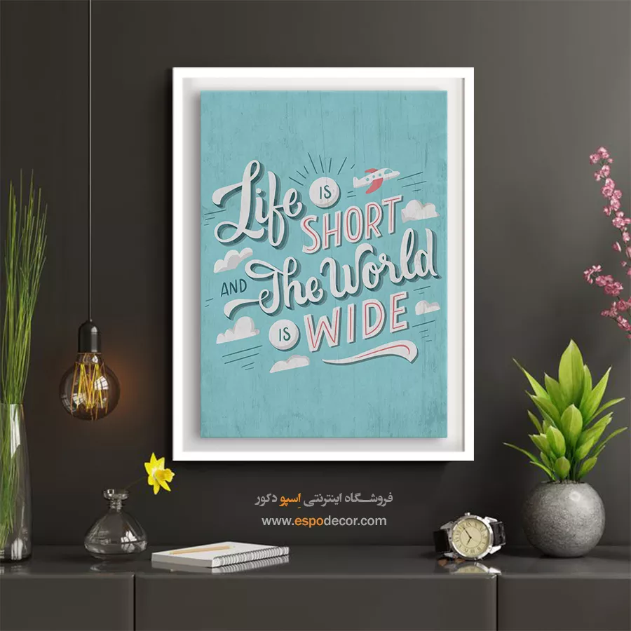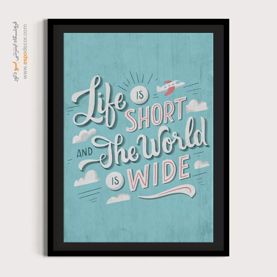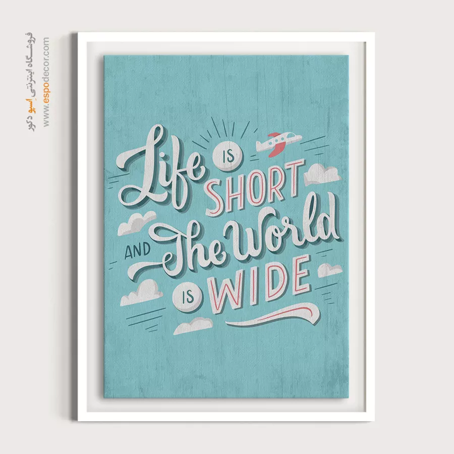 زندگی کوتاه است و جهان گسترده است – تابلو تایپوگرافی انگلیسی