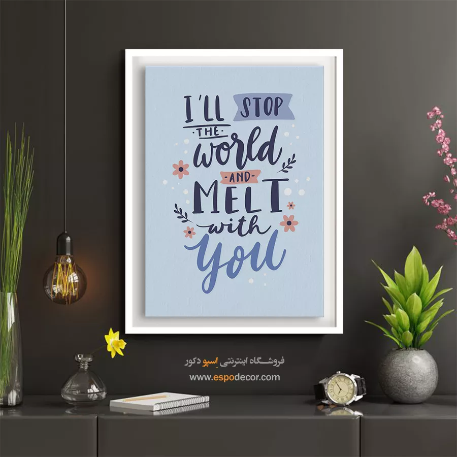 دنیا را متوقف می کنم و با تو ذوب می شوم – تابلو تایپوگرافی انگلیسی