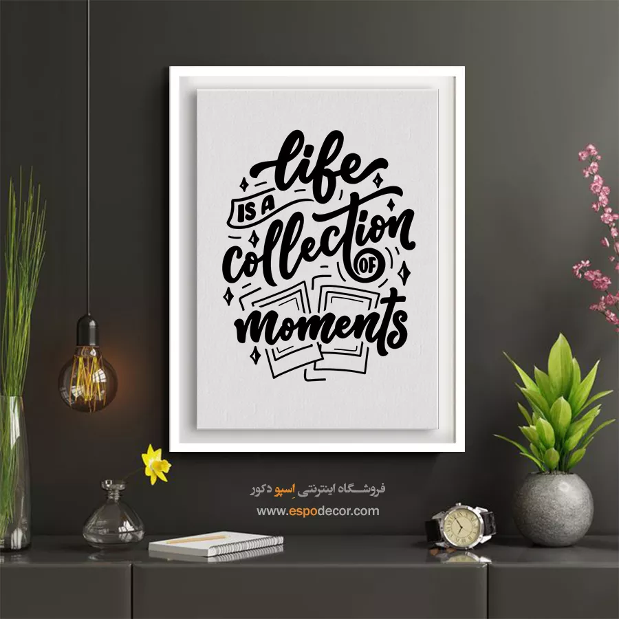 زندگی مجموعه ای از لحظه هاست – تابلو تایپوگرافی انگلیسی