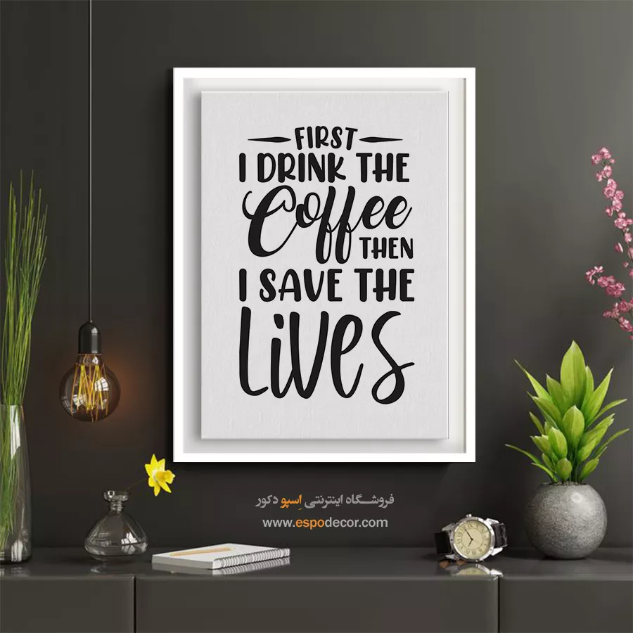 اول قهوه، بعد نجات زندگی – تابلو تایپوگرافی انگلیسی