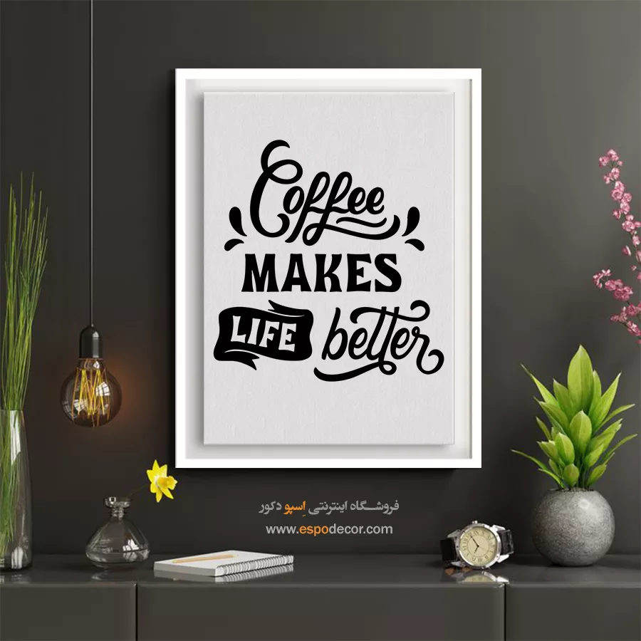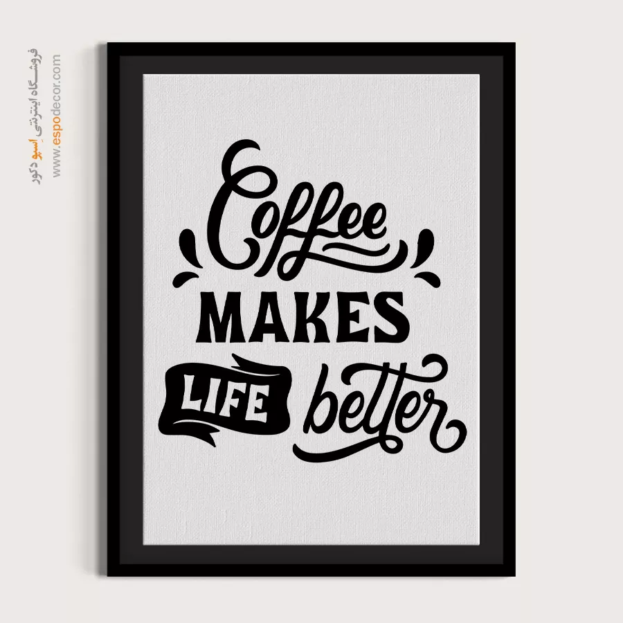 قهوه زندگی رو بهتر میکنه – تابلو تایپوگرافی انگلیسی