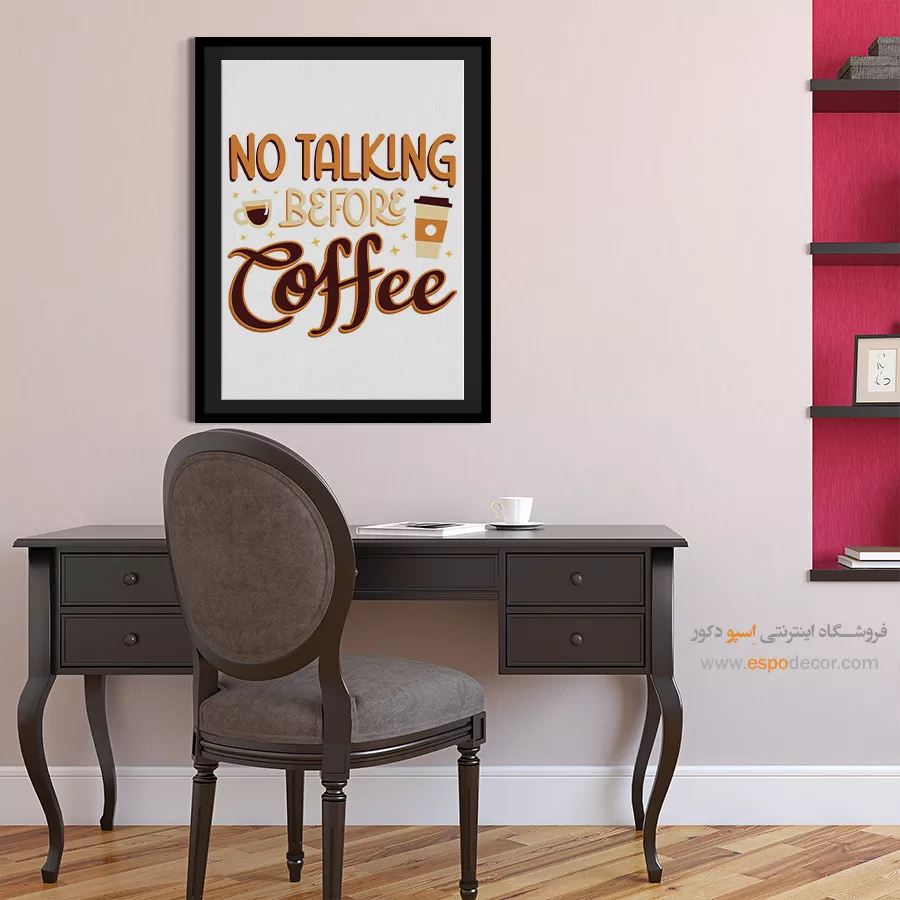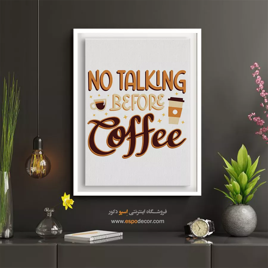 قبل از قهوه حرف زدن ممنوع – تابلو تایپوگرافی انگلیسی