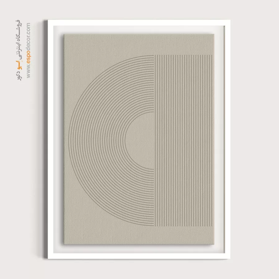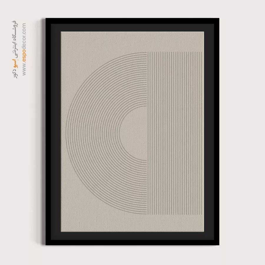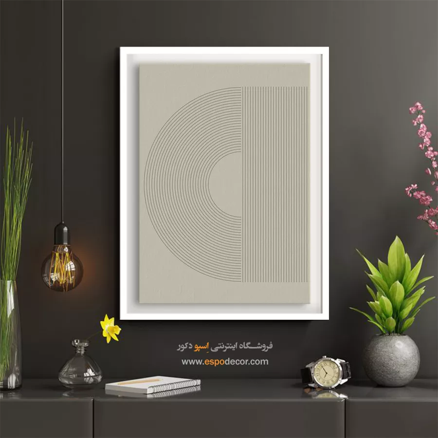 سبک مینیمال: تمرکز بر سادگی است. تابلوهای مینیمال آرت با خطوط ساده، اشکال هندسی و پالت رنگی خنثی (مانند سیاه، سفید، خاکستری یا بژ) ایدهآل هستند. این تابلوها اغلب بدون قاب یا با کلاف ساده نصب میشوند تا تأکید بر مفهوم و فضای خالی باشد.