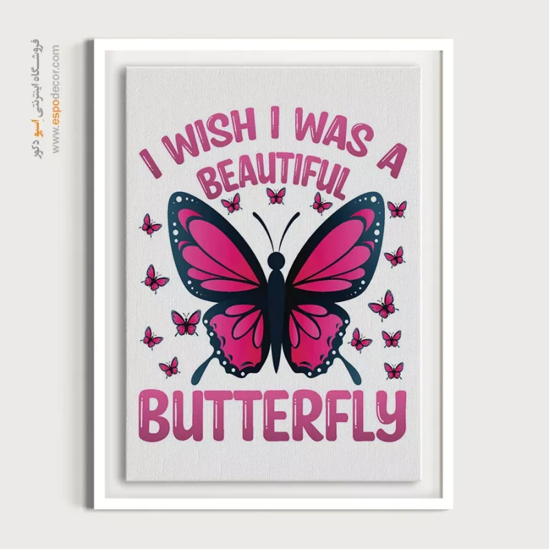 کاش من یک پروانه زیبا بودم – تابلو تایپوگرافی انگلیسی