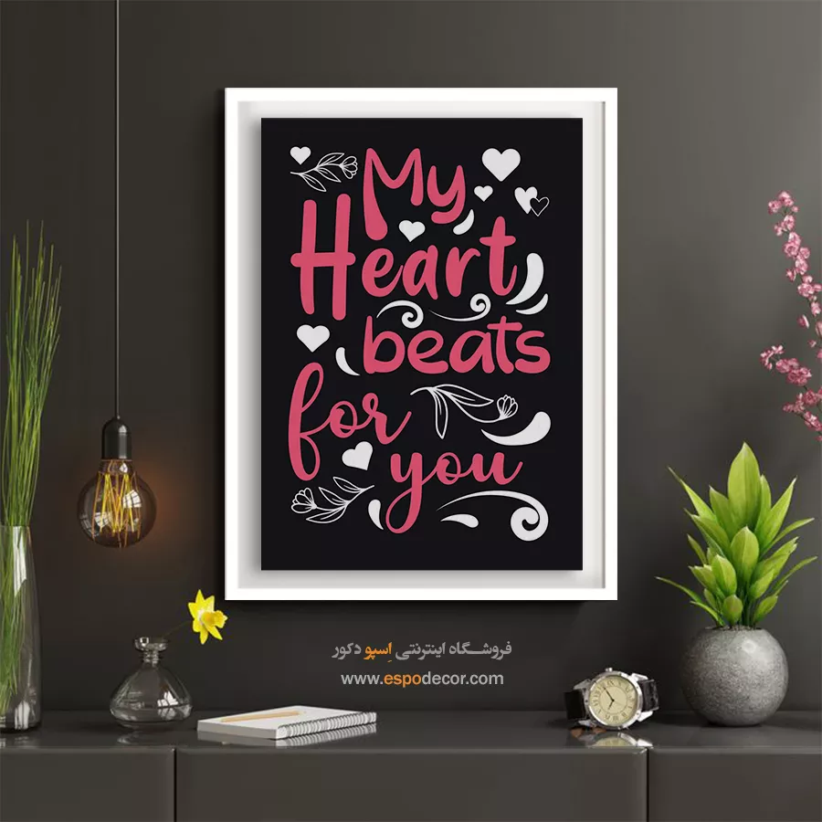 قلبم برای تو می تپد – تابلو تایپوگرافی انگلیسی