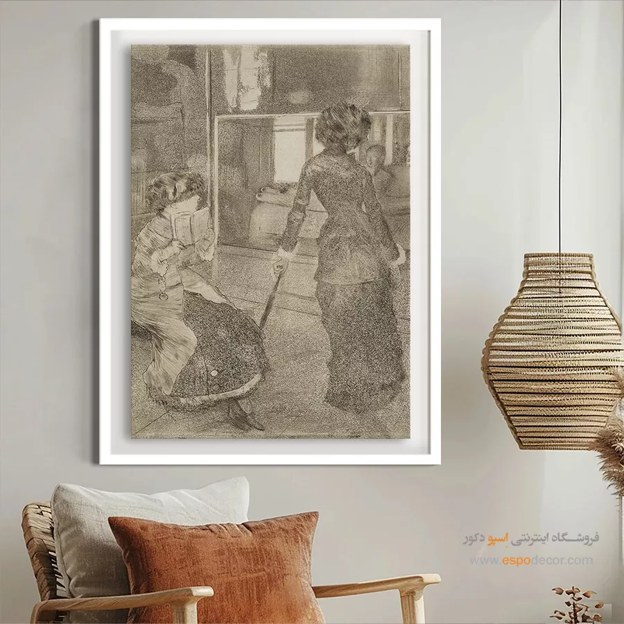 تابلو مری کاسات در لوور اثر ادگار دگا، تصویری شفاف و زنده از لحظه‌ای هنری در موزه لوور را ارائه می‌دهد. دگا با مهارت امپرسیونیستی خود، نورپردازی ملایم و رنگ‌های متعادل را به‌کار برده تا فضایی آرام و در عین حال پویا خلق کند. جزئیات دقیق لباس‌ها و حالت طبیعی بدن شخصیت، حس واقع‌گرایی را به بیننده منتقل می‌کند و بیننده را در لحظه حضور می‌دهد. این تابلو با توانایی خود در ثبت حرکت و ارتباط انسانی، انتخابی ایده‌آل برای تابلو نقاشی فرانسوی معروف در سالن پذیرایی یا اتاق مطالعه است و فضایی لوکس و فرهنگی به محیط اضافه می‌کند. سبک امپرسیونیستی دگا، همراه با دقت در جزئیات و ترکیب‌بندی هوشمندانه، این اثر را به نمونه‌ای ماندگار در تاریخ هنر فرانسه تبدیل کرده است.