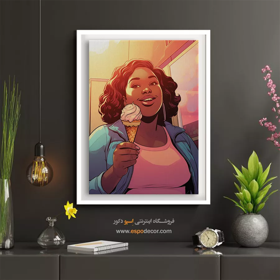 - ادامه طرح اصلی تا کنارههای بوم: ما در اسپو دکور از این روش استفاده میکنیم تا تابلو حالت منسجم و یکپارچه داشته باشد و از نمای کناری نیز جذاب دیده شود.