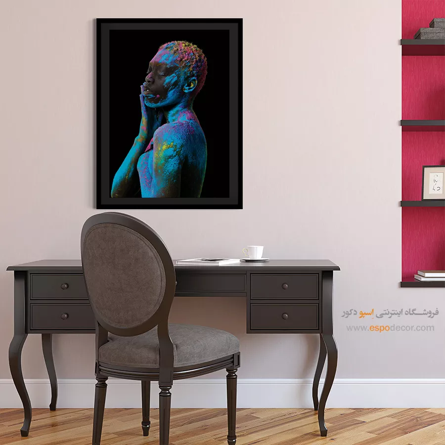 • انتخاب رنگ‌های مکمل یا متضاد: مانند تابلویی با تناژ نارنجی برای دیوار آبی، که تضاد جذاب و پویایی ایجاد می‌کند و تابلو را به نقطه کانونی تبدیل می‌کند.