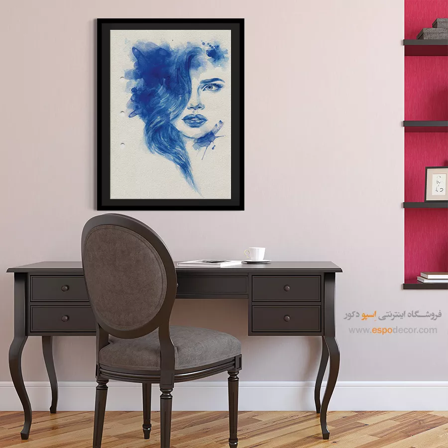 • انتخاب سایه‌های مختلف از رنگ دیوار: مانند تابلو آبی تیره روی دیوار آبی روشن، که حس آرامش و یکپارچگی در فضا ایجاد می‌کند.