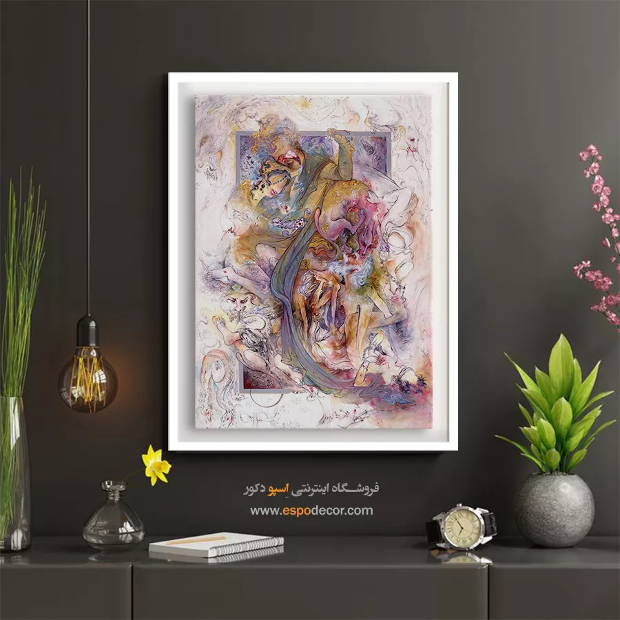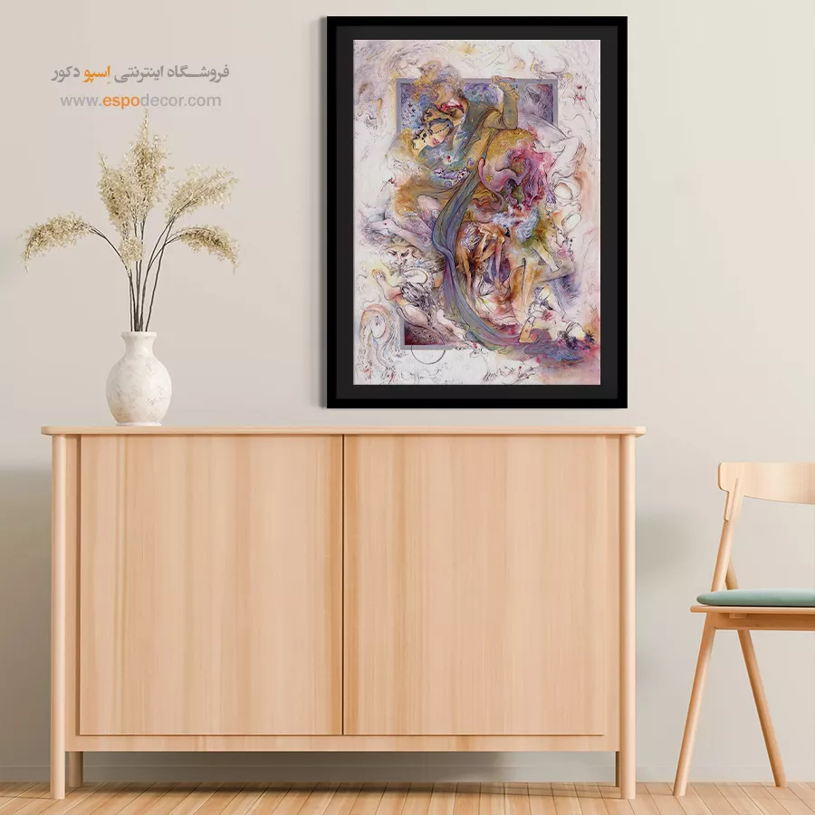 - ادامه طرح اصلی تا کنارههای بوم: ما در اسپو دکور از این روش استفاده میکنیم تا تابلو حالت منسجم و یکپارچه داشته باشد و از نمای کناری نیز جذاب دیده شود.