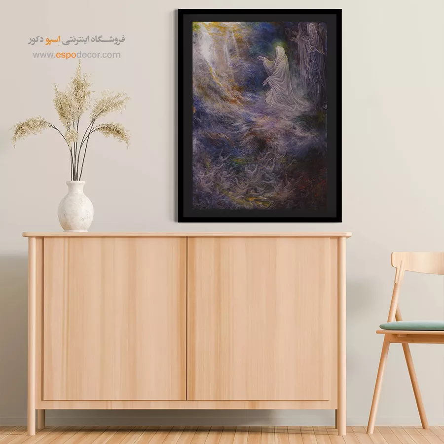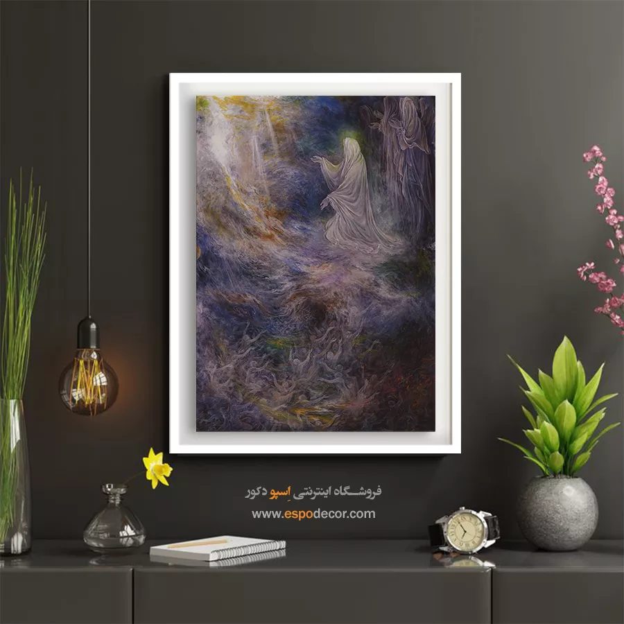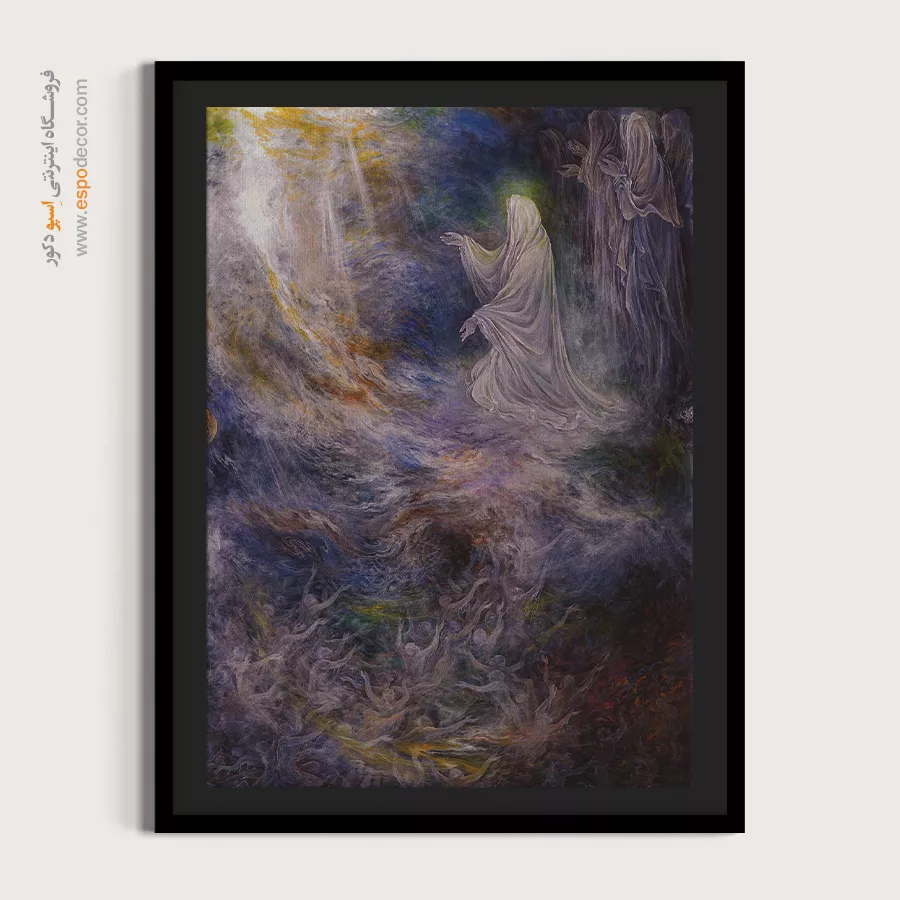 تابلو نقاشی «شفاعت» (Intercession)، یکی از روحانی‌ترین و امیدبخش‌ترین آثار مذهبی استاد محمود فرشچیان است. این اثر روایتی تکان‌دهنده از روز رستاخیز است؛ جایی که ارواح در تاریکی و اضطراب دست نیاز دراز کرده‌اند و وجودی مقدس و نورانی (نماد حضرت زهرا (س) یا اولیای الهی) واسطه‌ی فیض و نجات آن‌ها می‌شود. ما در اسپو دکور، این تابلوی عرفانی را با بالاترین کیفیت چاپ روی بوم کنواس آماده کرده‌ایم تا نمادی از امید و رحمت الهی را به فضای معنوی شما بیاوریم.
