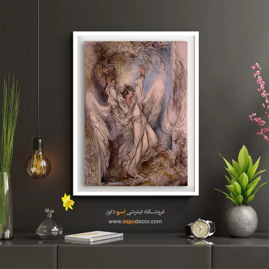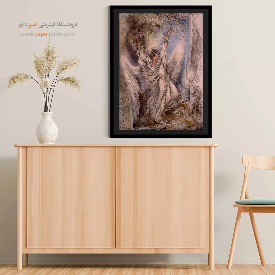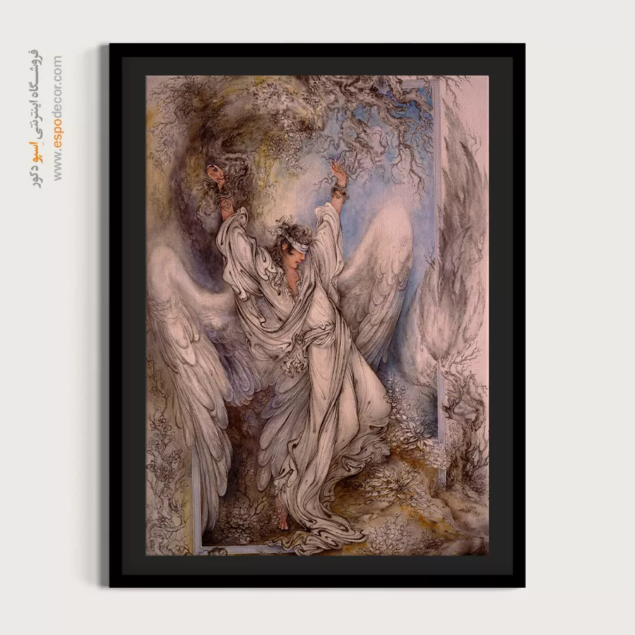 تابلو نقاشی «بیگناهی» که با نامهای **«معصومیت»** یا **«فرشته در بند»** نیز شناخته میشود، یکی از پراحساسترین آثار استاد محمود فرشچیان است. این تابلو تصویری از رنجِ پاکی است؛ فرشته یا انسانی آسمانی که با وجود داشتن بالهای پرواز، به درختی خشک زنجیر شده و چشمانش بسته است. ما در اسپو دکور، این اثر هنری عمیق را که ترکیبی از طراحی و نقاشی است، با بالاترین کیفیت روی بوم کنواس چاپ کردهایم تا اثری متفاوت و تفکربرانگیز را به دکوراسیون شما اضافه کنیم.تحلیل هنری و نمادشناسی اثر