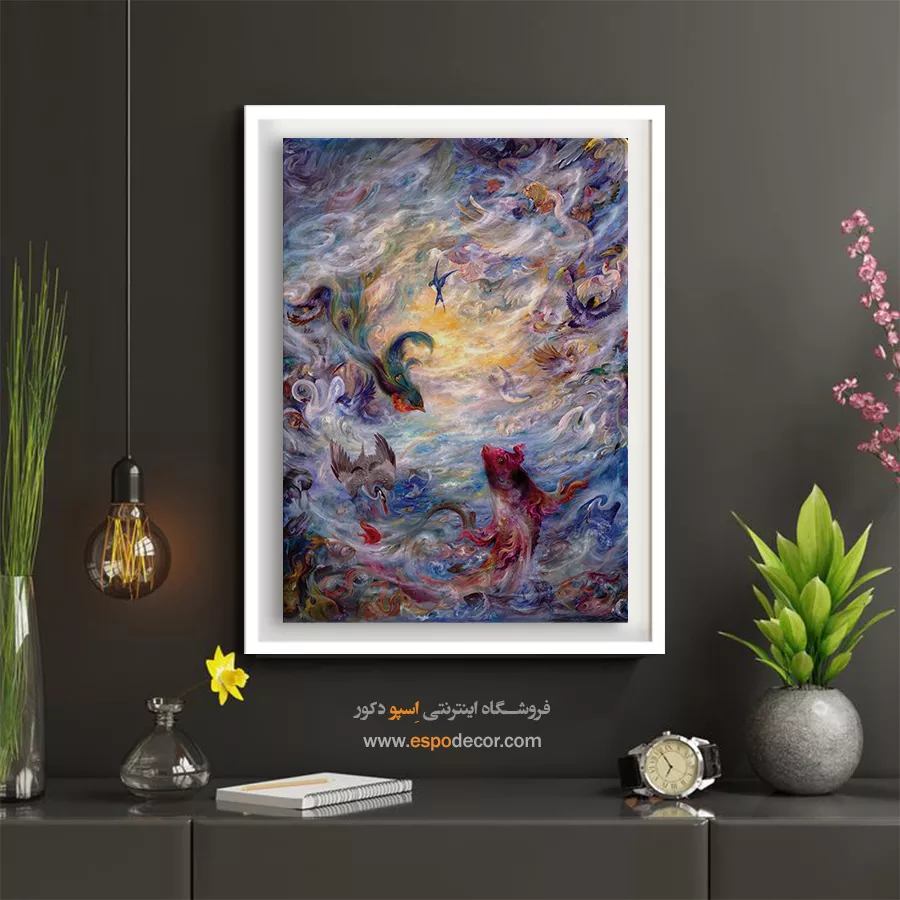 - جلوهی بصری پویا: چرخش و حرکت موجودات در این تابلو باعث میشود دیوار اتاق، “زنده” و “متحرک” به نظر برسد و از یکنواختی خارج شود.