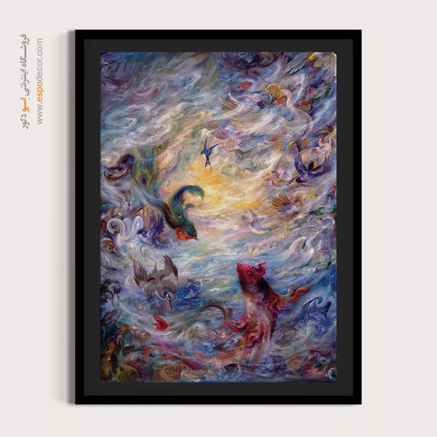 تابلو بوم نقاشی پرندگان و ماهیها اثر استاد فرشچیان