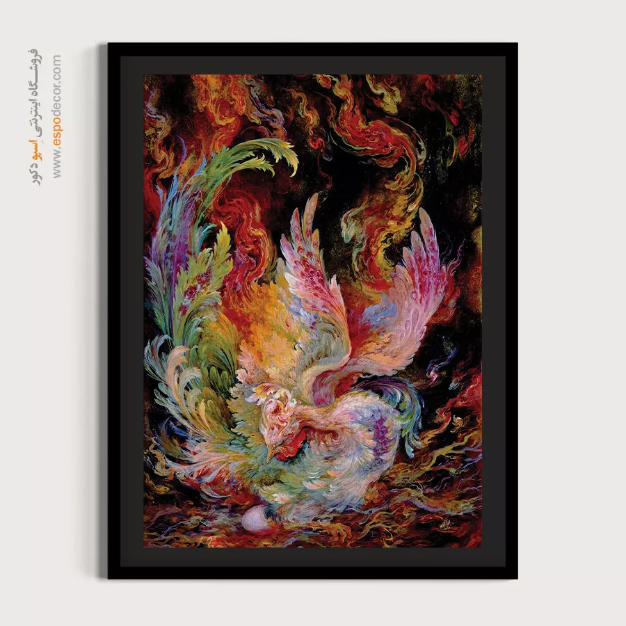 تابلو نقاشی «آخرین نفس ققنوس»، یکی از پرشورترین و نمادینترین آثار استاد محمود فرشچیان است. این اثر تجسم بصریِ اسطورهی جهانی ققنوس (The Phoenix) است؛ پرندهای که خود را در آتش میسوزاند تا از تخم یا خاکسترش دوباره متولد شود. این نقاشی نه فقط یک تصویر، بلکه بیانیهی **«امید جاودانه»**، **«فداکاری»** و **«پیروزی زندگی بر مرگ»** است. ما در اسپو دکور، این تابلوی پرقدرت را با کیفیتی خیرهکننده روی بوم کنواس ارائه میدهیم تا نیروی حیات را به فضای شما منتقل کند.تحلیل هنری و نمادشناسی اثر
