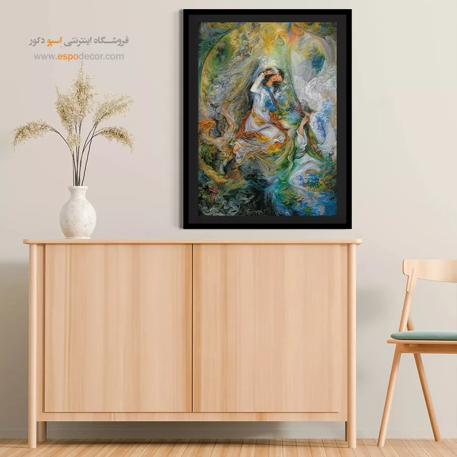 - ادامه طرح اصلی تا کنارههای بوم: ما در اسپو دکور از این روش استفاده میکنیم تا تابلو حالت منسجم و یکپارچه داشته باشد و از نمای کناری نیز جذاب دیده شود.