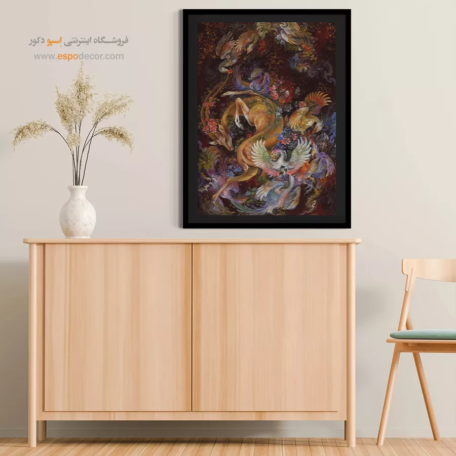 - نقطه کانونی گرم و عمیق: این تابلو به عنوان یک نقطه کانونی، گرما و عمق زیادی به فضای شما میدهد و بیننده را به تامل وامیدارد.