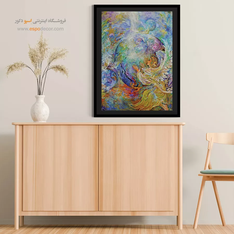 - ادامه طرح اصلی تا کنارههای بوم: ما در اسپو دکور از این روش استفاده میکنیم تا تابلو حالت منسجم و یکپارچه داشته باشد و از نمای کناری نیز جذاب دیده شود.