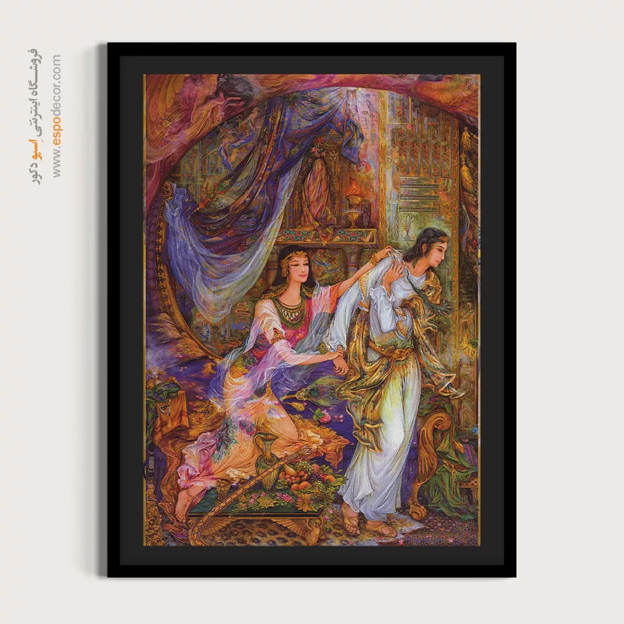 تابلو داستان حضرت یوسف (ع) و زلیخا را روایت می‌کند و با رنگ‌های درخشان، حس مقاومت در برابر وسوسه را به تصویر می‌کشد.