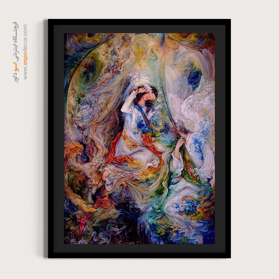 تابلو نقاشی «صفحه هستی» (Page of Existence) که با نامهای **«راز آفرینش»** و **«تجلی»** نیز شناخته میشود، یکی از فلسفیترین آثار استاد محمود فرشچیان است. این اثر تصویری از آن لحظهی نابی است که انسان از پوستهی ظاهری دنیا عبور میکند و با حقیقتِ باشکوه و پیچیدهی هستی روبرو میشود. در این تابلو، پردهای نامرئی کنار میرود و نوری از آگاهی بر جانِ انسان میتابد. ما در اسپو دکور، این تابلوی پرمغز را با کیفیت چاپ موزهای روی بوم کنواس آماده کردهایم تا فضایی سرشار از تفکر و معنا را به دکوراسیون شما اضافه کنیم.تحلیل هنری و نمادشناسی اثر