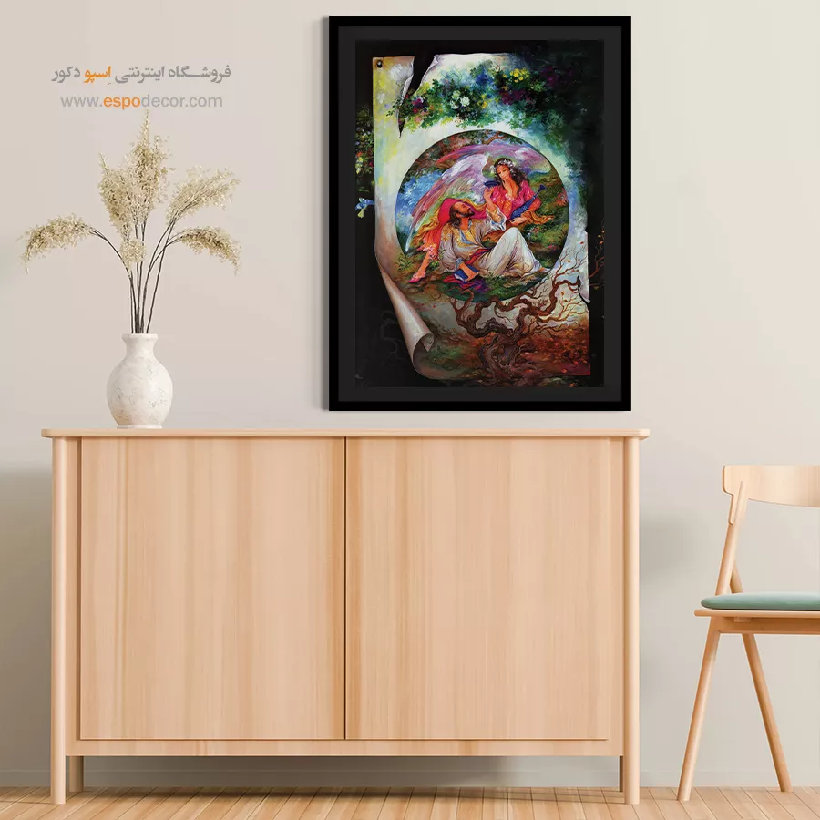 - ادامه طرح اصلی تا کنارههای بوم: ما در اسپو دکور از این روش استفاده میکنیم تا تابلو حالت منسجم و یکپارچه داشته باشد و از نمای کناری نیز جذاب دیده شود.