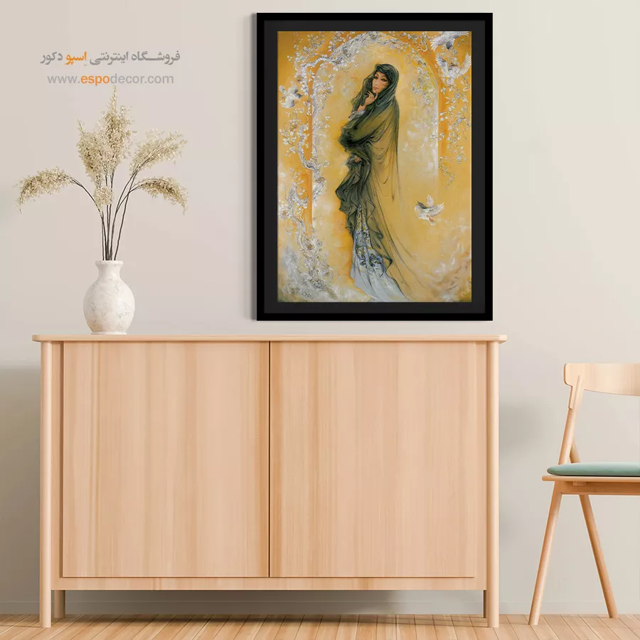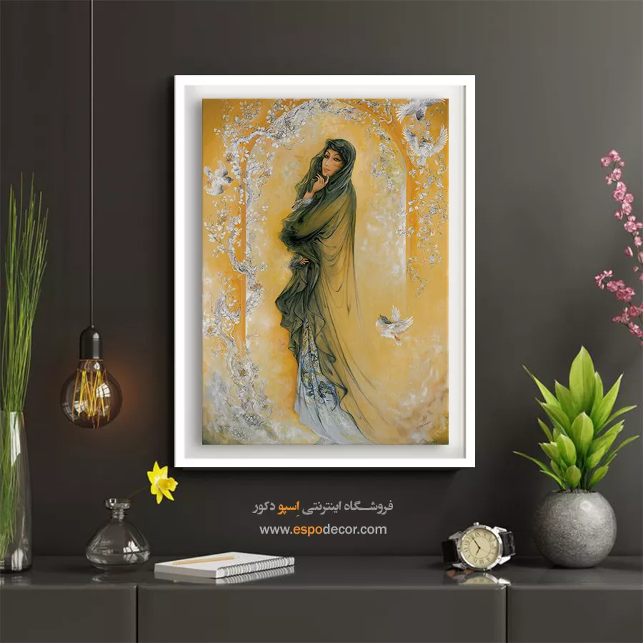 - هماهنگی با دکوراسیون روشن: این تابلو با مبلمان سفید، پردههای حریر و دکوراسیونهای سبک شبیشیک (Shabby Chic) یا کلاسیک روشن بسیار هماهنگ است.