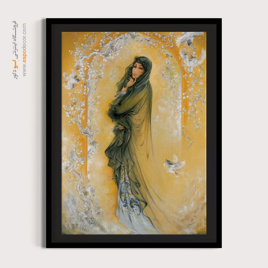 تابلو نقاشی «نگاه» (The Gaze) که با نامهای شاعرانهی **«گفتگوی خاموش»** یا **«نجوای چشمها»** نیز شناخته میشود، یکی از احساسیترین و ملیحترین آثار استاد محمود فرشچیان است. این اثر ستایشی از قدرت ارتباط غیرکلامی است؛ جایی که کلمات باز میمانند و تنها نگاه است که سخن میگوید. بانویی زیبا با تمام توجه و احساس، به پرندهای کوچک مینگرد و گویی رازی را با او در میان میگذارد. ما در اسپو دکور، این تابلوی آرامبخش را با بالاترین کیفیت چاپ روی بوم کنواس آماده کردهایم تا لطافت و آرامش را به فضای شما هدیه دهیم.تحلیل هنری و نمادشناسی اثر