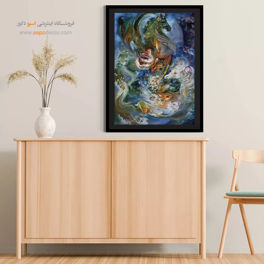 - ادامه طرح اصلی تا کنارههای بوم: ما در اسپو دکور از این روش استفاده میکنیم تا تابلو حالت منسجم و یکپارچه داشته باشد و از نمای کناری نیز جذاب دیده شود.