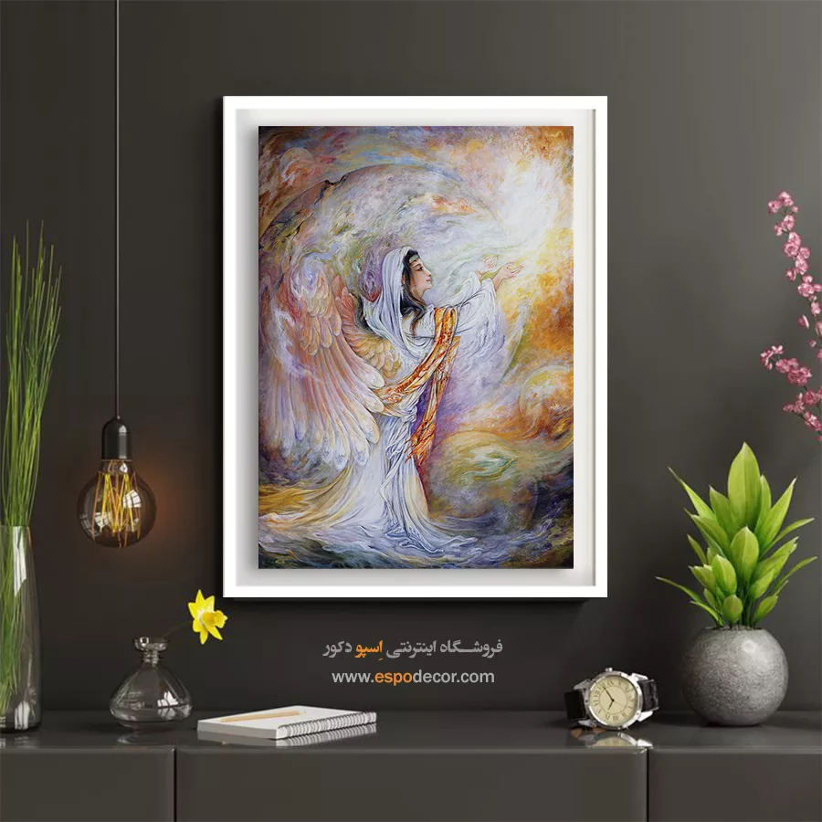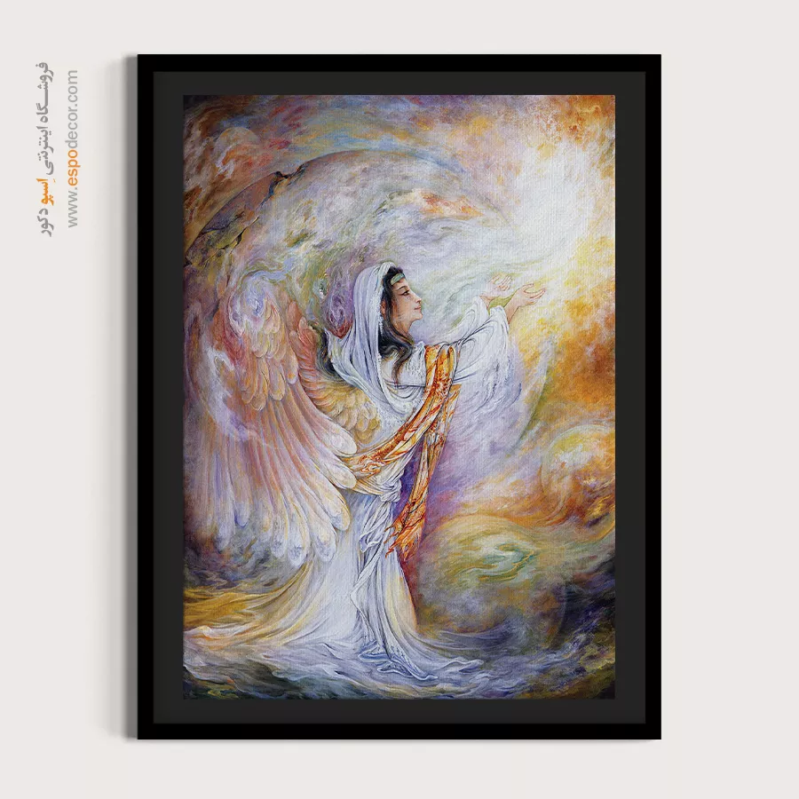 تابلو نقاشی «پناهگاه» (Shelter) یکی از لطیفترین و معنویترین آثار استاد محمود فرشچیان است که لحظهی نابِ اتصال بنده با خالق را به تصویر میکشد. در دنیایی پر از هیاهو، این اثر پنجرهای است به سوی آرامش ابدی و امید. استاد فرشچیان در این نگارگری، انسانی (یا فرشتهای) را ترسیم کرده که از تیرگیهای روزگار گریخته و دستانش را به سوی منبع لایزال نور دراز کرده است. ما در اسپو دکور، این اثر فاخر را که نمادی از امید و استجابت دعا است، با بالاترین کیفیت چاپ برای زینت بخشیدن به فضای شما آماده کردهایم.تحلیل هنری و نمادشناسی اثر