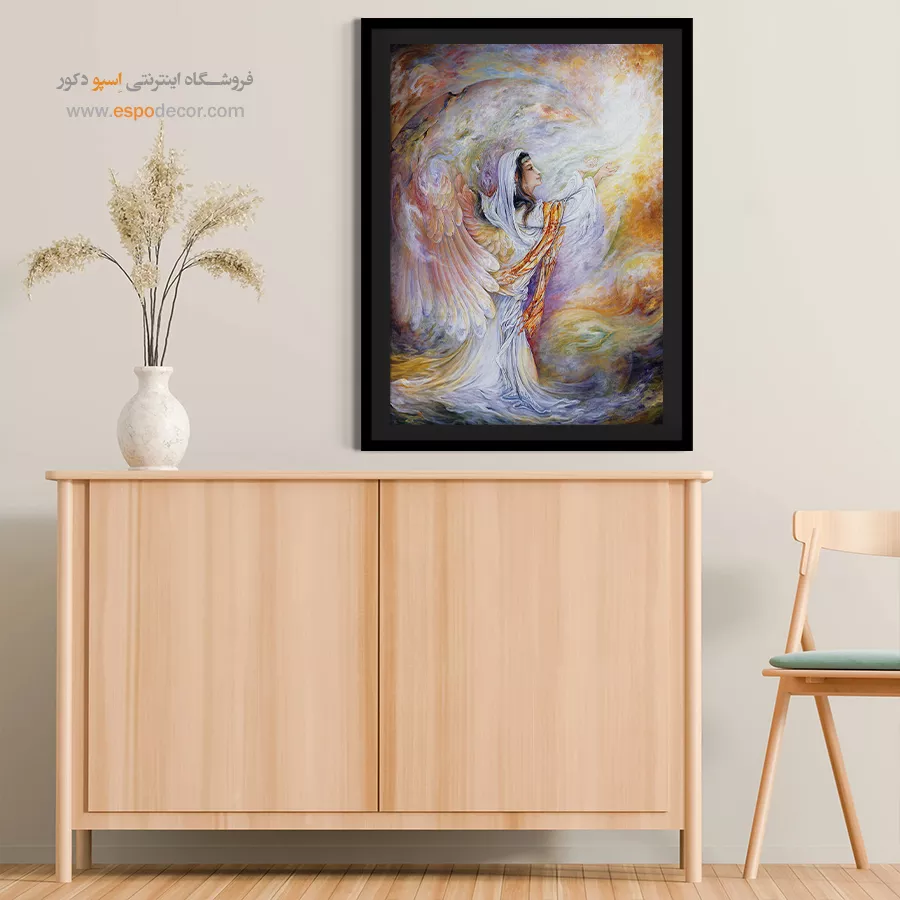 این اثر هنری علاوه بر زیبایی بصری، انرژی مثبت فراوانی به محیط میبخشد:- ایجاد حس امنیت و آرامش: به دلیل موضوع اثر و استفاده از رنگهای روشن و لطیف، این تابلو برای اتاق خواب، اتاق نیایش و فضاهایی که نیاز به سکوت و آرامش دارند، ایدهآل است.