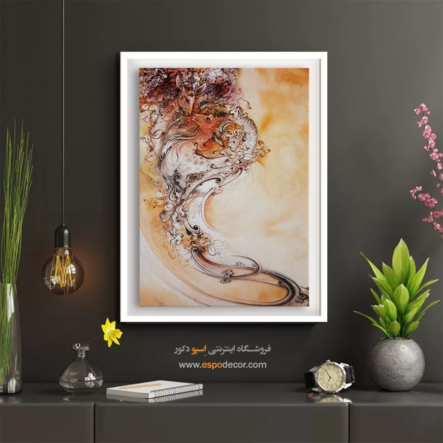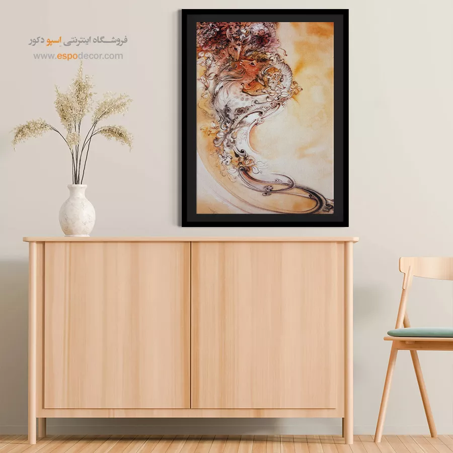 - ایجاد آرامش بصری: فضای خالی (Negative Space) موجود در پسزمینه تابلو، باعث میشود چشم بیننده خسته نشود و حس سبکی و آرامش به محیط القا گردد.