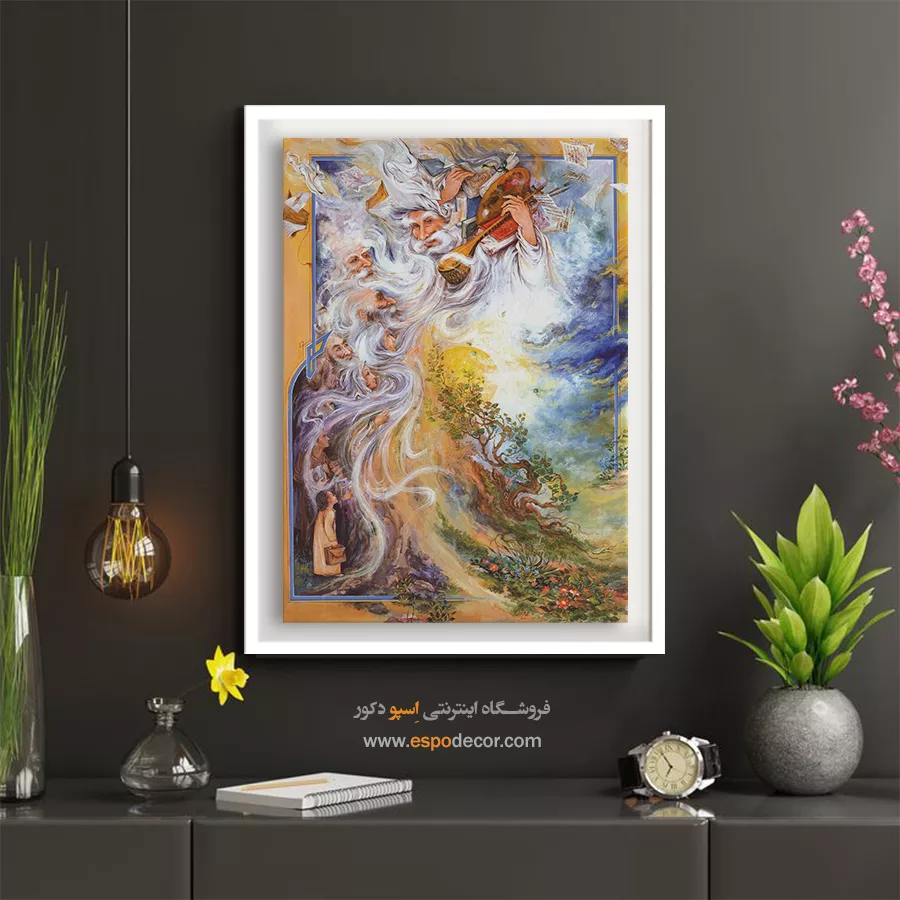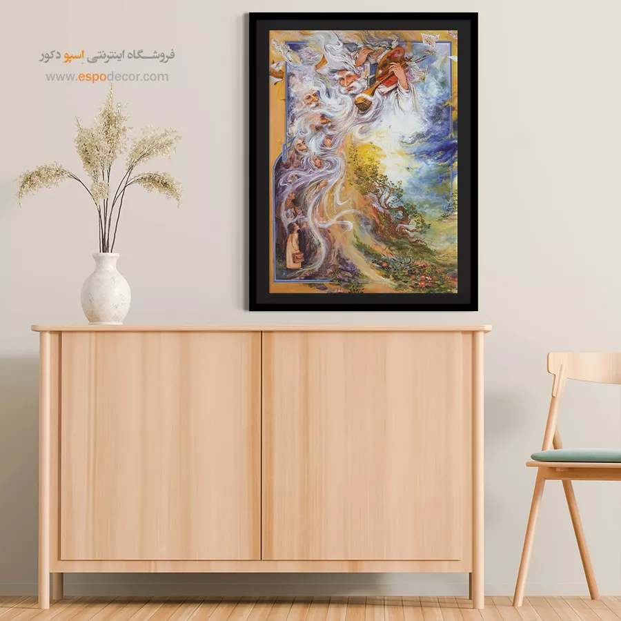 - عمق بخشیدن به فضای منزل: نصب این تابلو در اتاق نشیمن، نشاندهندهی نگاه عمیق میزبان به زندگی است و فضایی سرشار از وقار و احترام ایجاد میکند.