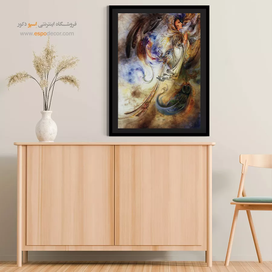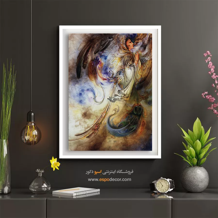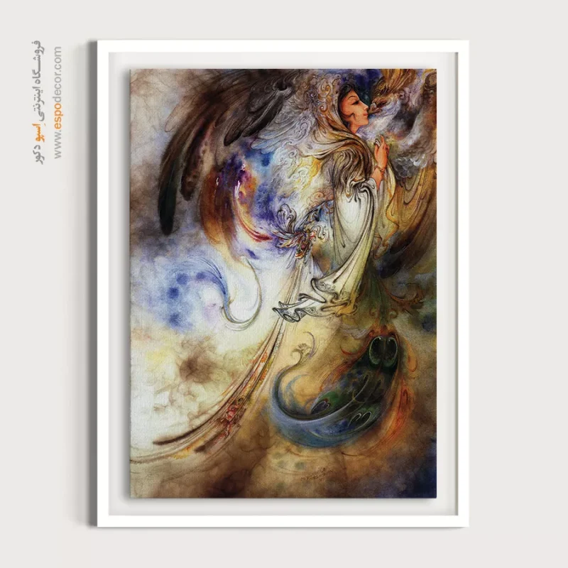 تابلو نقاشی «ستایش نور» (Praising the Light) یکی از عمیقترین و معنویترین آثار زندهیاد استاد محمود فرشچیان است. این اثر که در آن فیگوری زنانه یا فرشتهگونه در حالتی از عبادت و نیایش دیده میشود، تبلورِ مفهومِ نور و گرما در ادبیات عرفانی است. این نگاره با خطوطِ پرشتاب و رنگهای غالب طلایی، قهوهای و آبی، حسِ یک **حالتِ مکاشفه** و حضورِ خالص در برابر منبعِ روشنایی را القا میکند. ما در اسپو دکور، این طرحِ بیبدیل را که نمادی از **عرفان و رسیدن به خودِ الهی** است، با بالاترین کیفیت روی بوم چاپ کردهایم تا اثری پر از آرامش و انرژی مثبت را به فضای شما هدیه دهیم.تحلیل هنری و نمادشناسی اثر