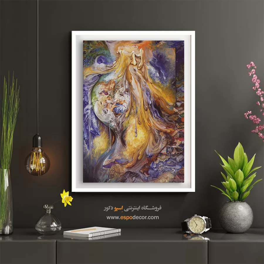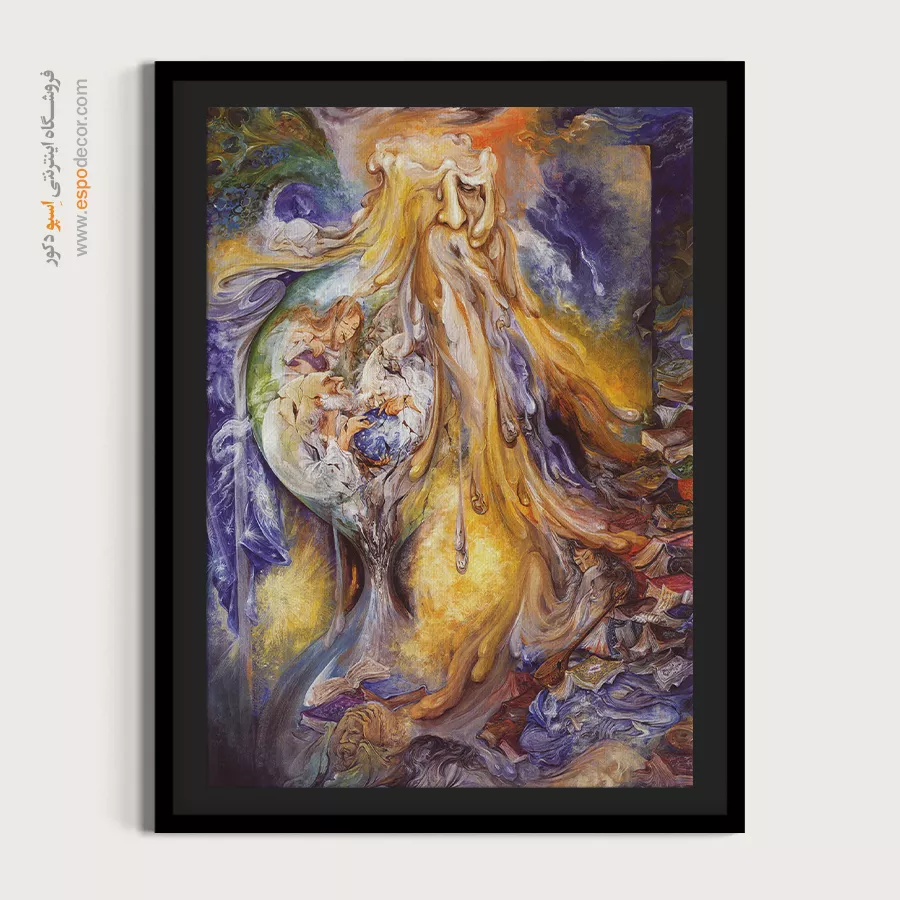 تابلو نقاشی «سفر ابدی است» (The Journey is Eternal) که گاهی با نام «شمع وجود» نیز شناخته میشود، تجسمی شاهکارگونه از مفهوم «زندگی» و «زمان» در نگاه استاد محمود فرشچیان است. در این اثر، زندگی انسان به شمعی تشبیه شده که نرمنرمک میسوزد و ذوب میشود، اما در پرتوِ نور آن، دانش، هنر و عشق شکل میگیرد. این تابلو تلنگری است بر ناپایداری جهان مادی و دعوت به اندیشیدن در بابِ آنچه از ما به جاودانگی میپیوندد. ما در اسپو دکور، این اثر عمیق و پرجزئیات را با کیفیتی درخورِ تحسین روی بوم چاپ کردهایم تا زینتبخش فضای فرهنگی و اندیشهورزانه شما باشد.تحلیل هنری و نمادشناسی اثر