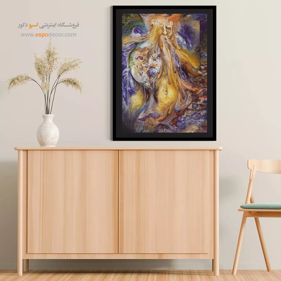 - ادامه طرح اصلی تا کنارههای بوم: ما در اسپو دکور از این روش استفاده میکنیم تا تابلو حالت منسجم و یکپارچه داشته باشد و از نمای کناری نیز جذاب دیده شود.